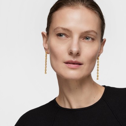 Pendientes largos TOUS Carrusel en acero inoxidable en color dorado y motivos oso entrelazados. Longitud pendientes: 65 mm. Grosor: 5,6 mm. Cierre presión.