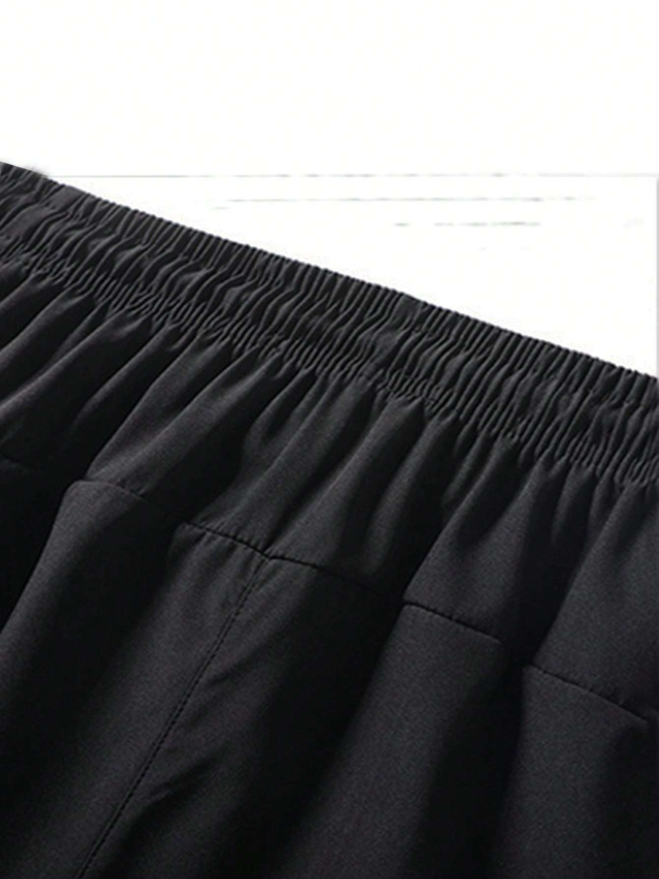 Men Drawstring Waist Zipper Pocket Shorts
