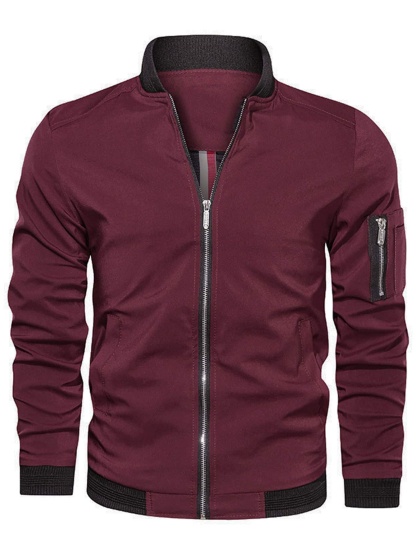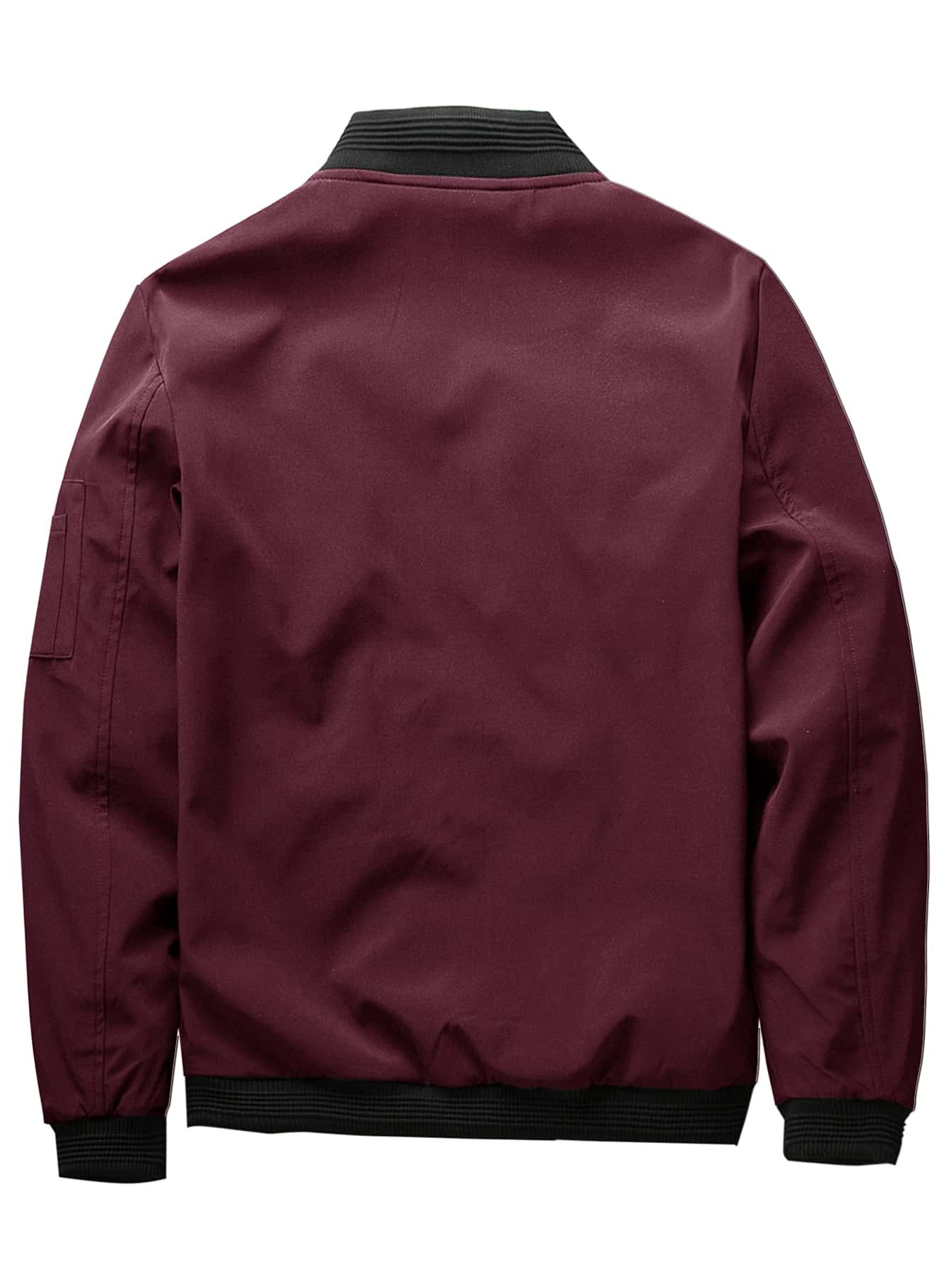 Men Solid Zip Up Bomber Jacket