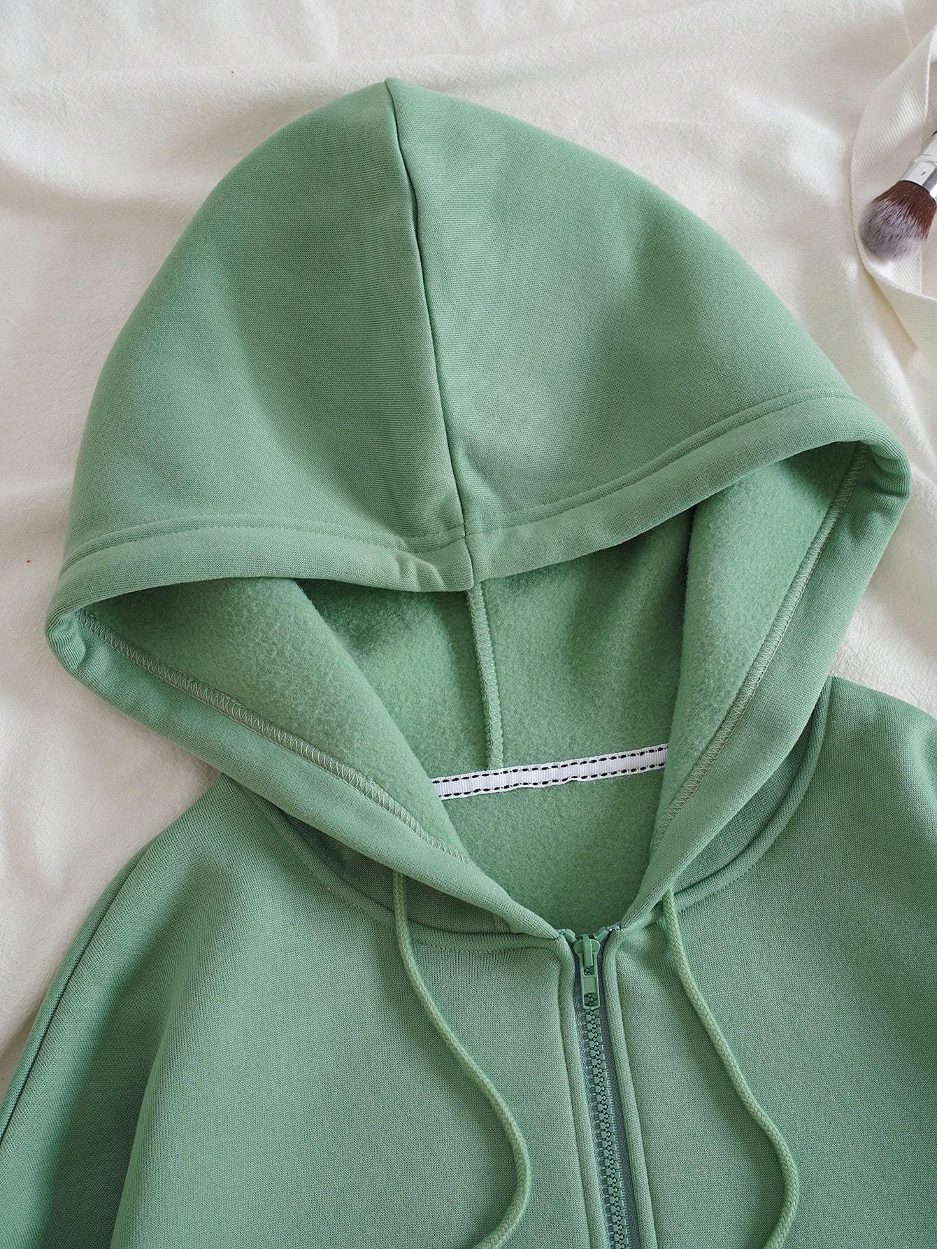 Zip Up Drawstring Thermal Lined Hoodie