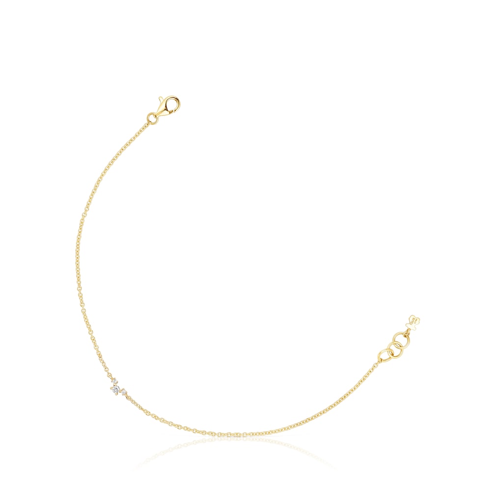 Pulsera TOUS Les Classiques de oro de 18 kt y 0,06 ct en peso total de tres diamantes talla brillante. Calidad diamante: H/SI. Longitud pulsera: 17,5 cm. Cierre mosquetón.
